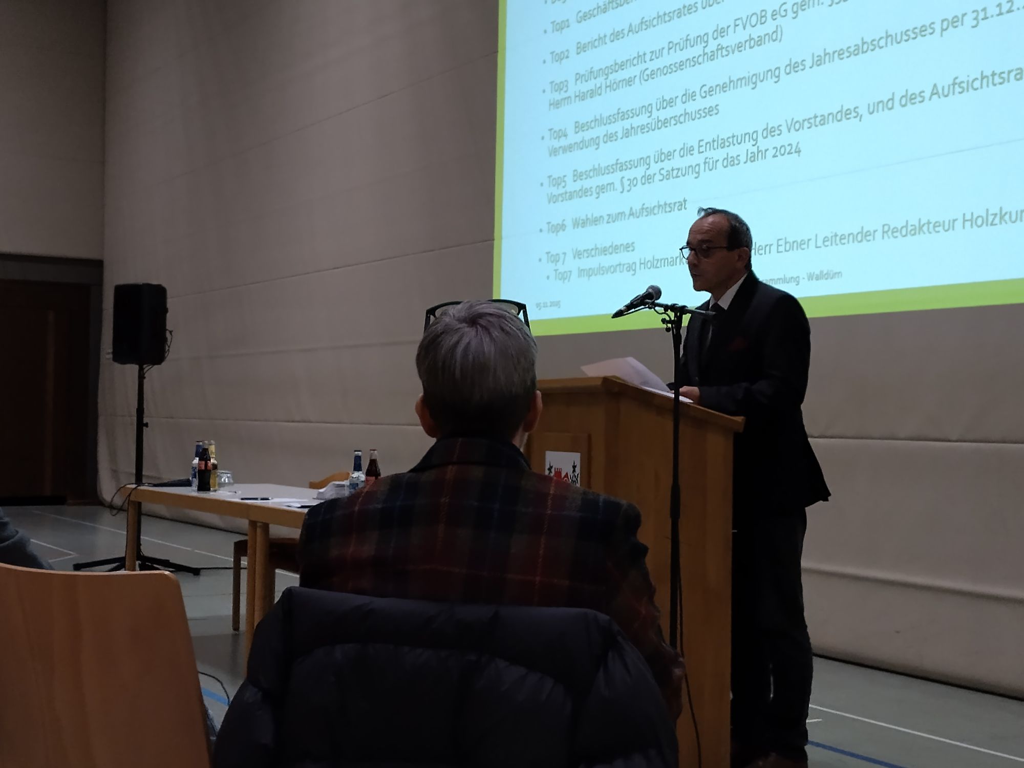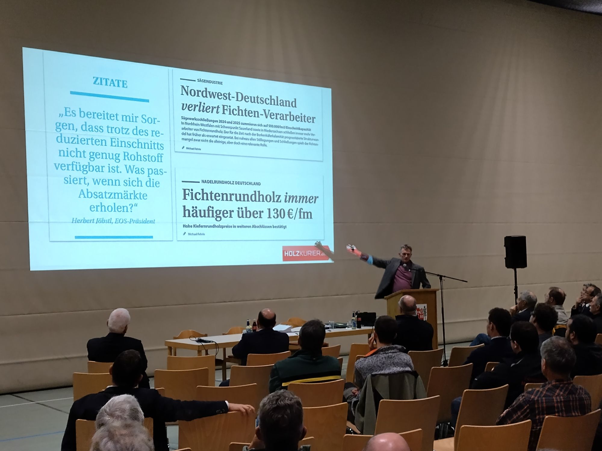 Abgerundet wurde die Veranstaltung durch einen Vortrag des Holzkurier-Chefredakteurs Gerd Ebner. Er erläutert die Entwicklung der Holzmärkte im Jahr 2025. Außerdem gab er einen sehr eindrücklichen Ausblick auf die möglichen weiteren Entwicklungen. Anschließend Bestand für alle Teilnehmer eine bewirtete Möglichkeit zum ungezwungenen Austausch.